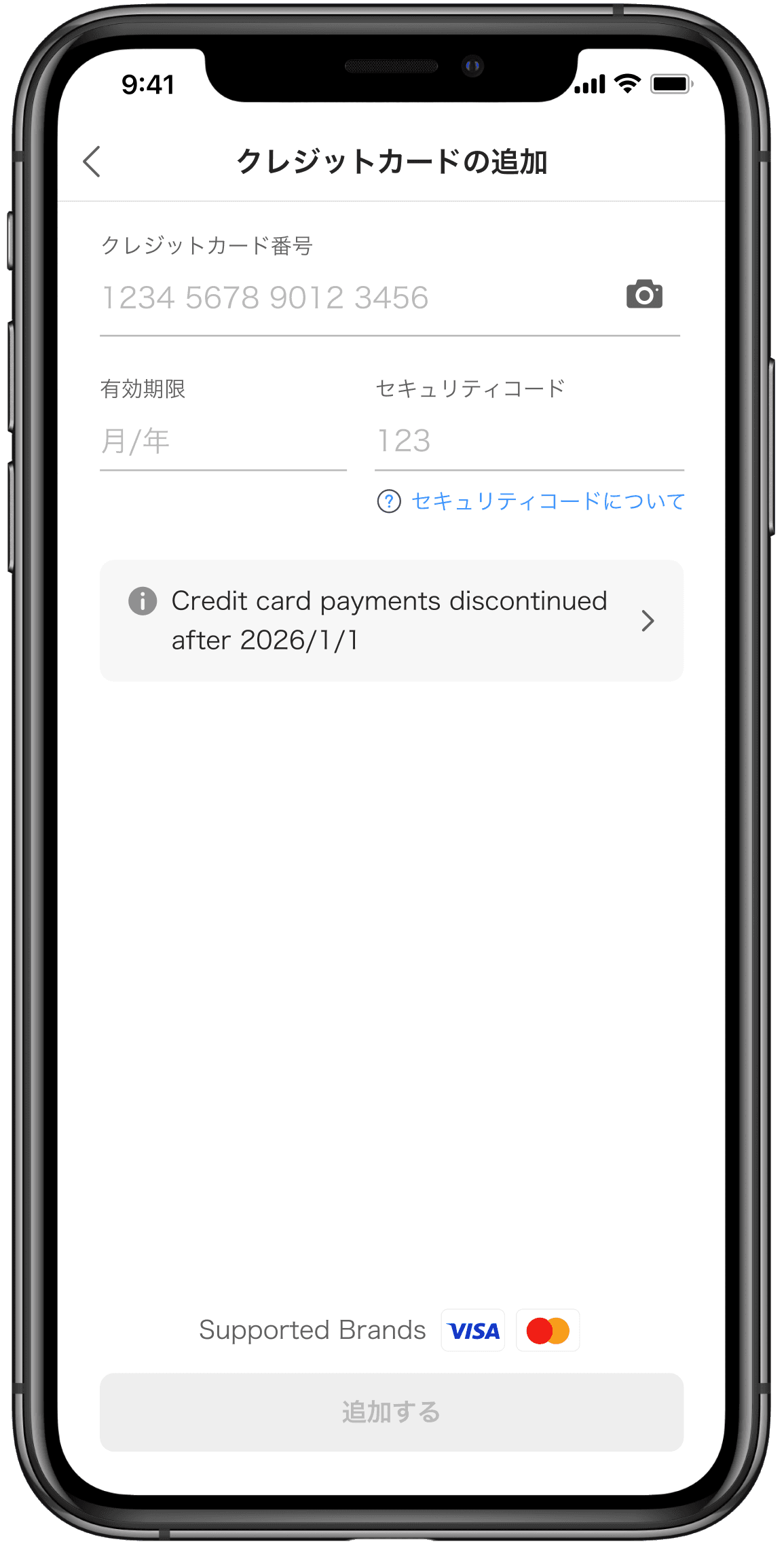 Notify users that credit card payments will end on a certain date, and allow them to purchase Credit Card Vouchers in advance.