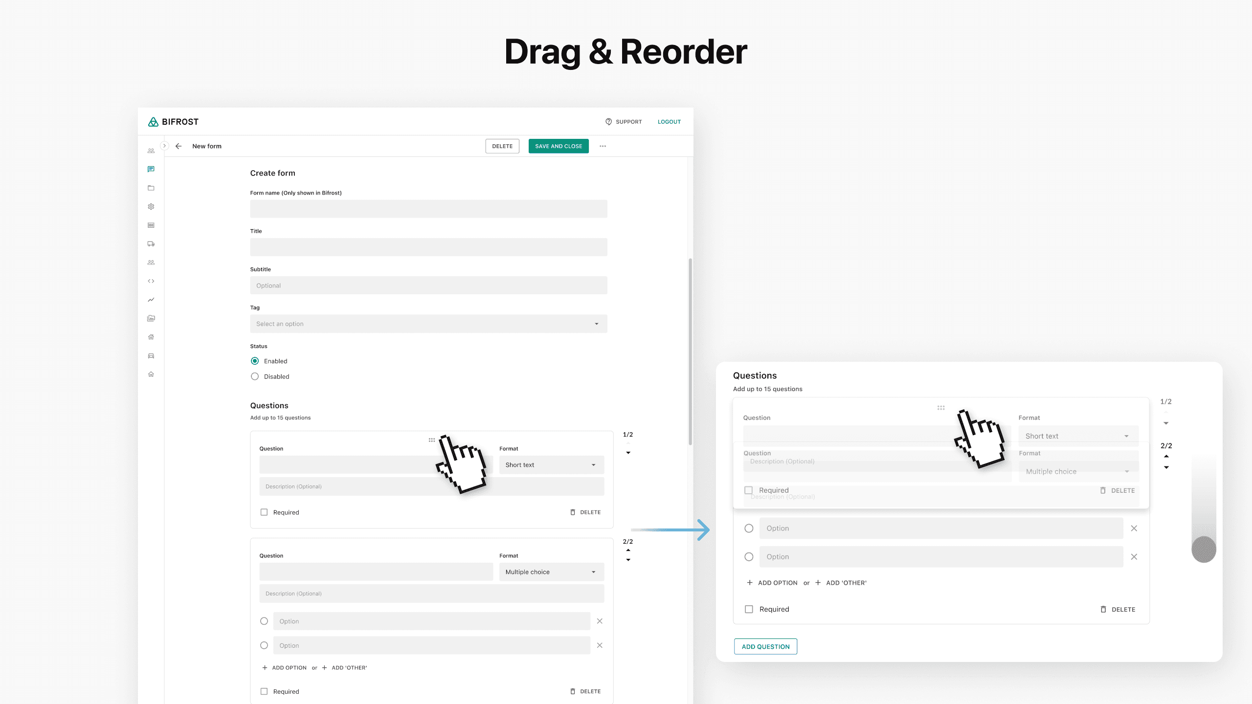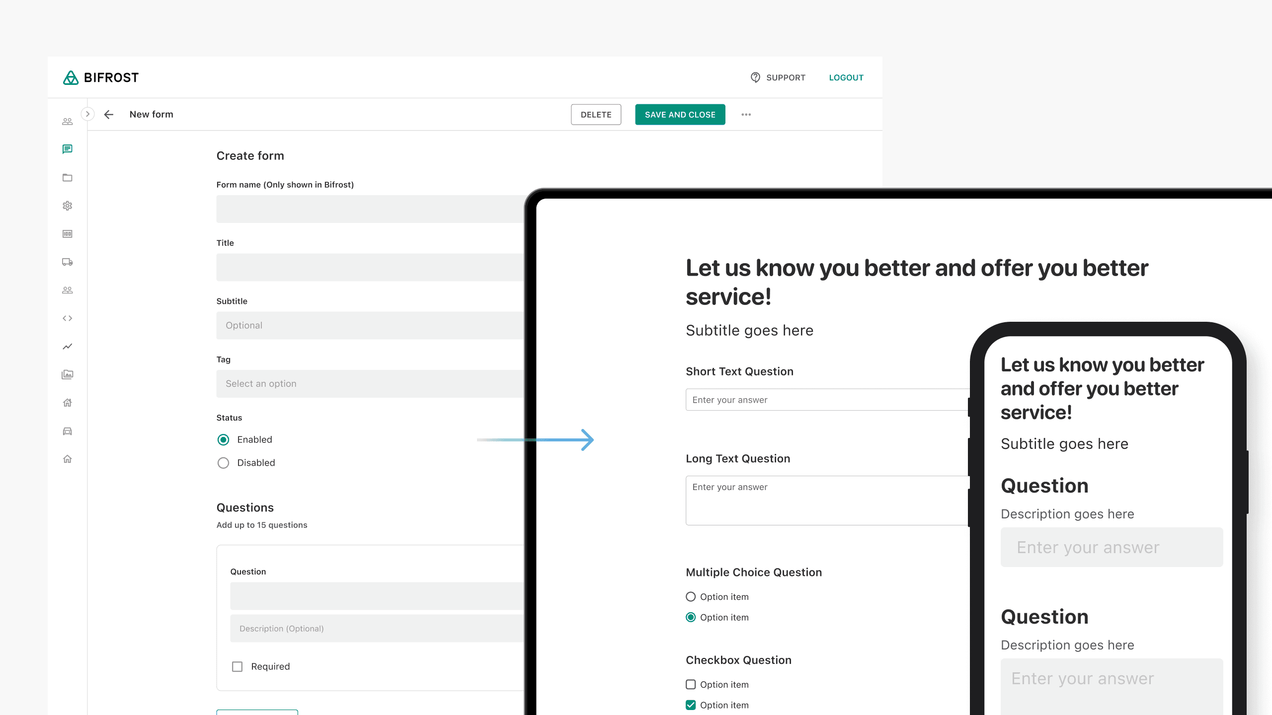 To address this, we built an in-house survey and form tool for collecting user feedback and generating potential business leads. We benchmarked competitors and interviewed stakeholders to identify the most valuable form types and question formats for marketing.