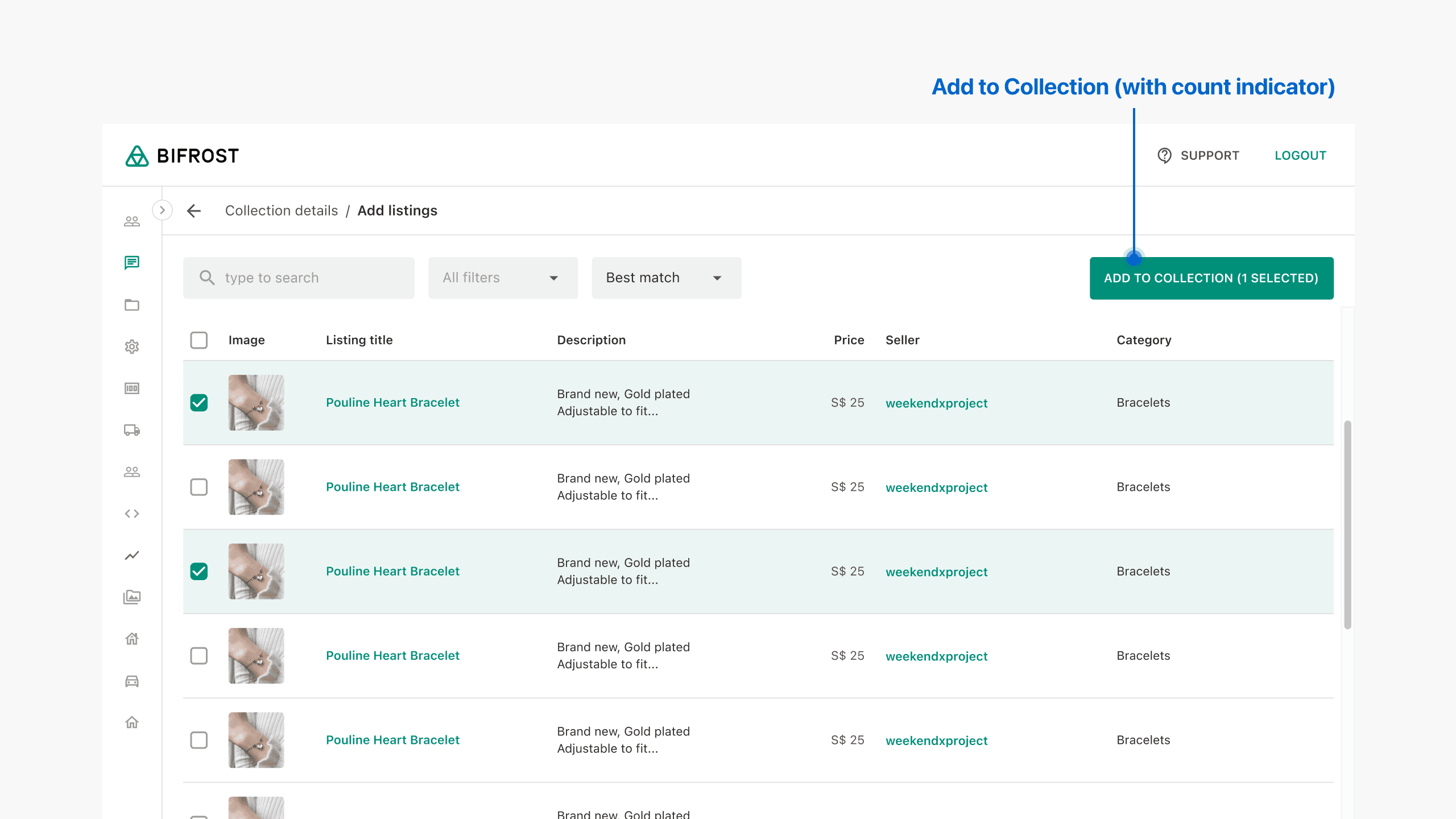 After selecting listings, users can add them to the collection.