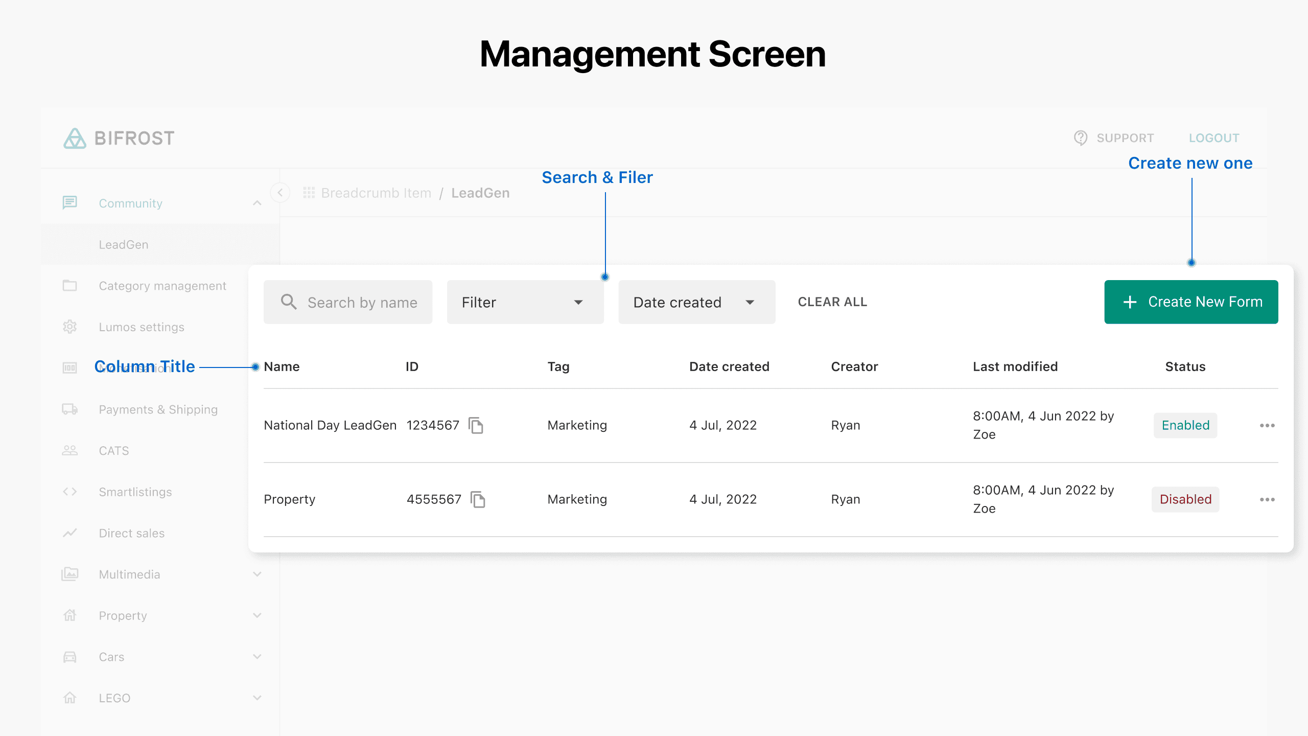 For the management page columns, we interviewed marketing stakeholders to find out which information was most important to show upfront.