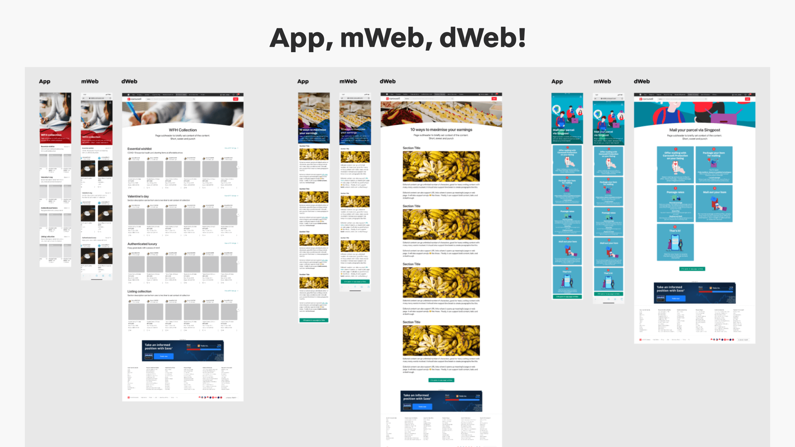 The design supports both Web and App platforms with a responsive layout.