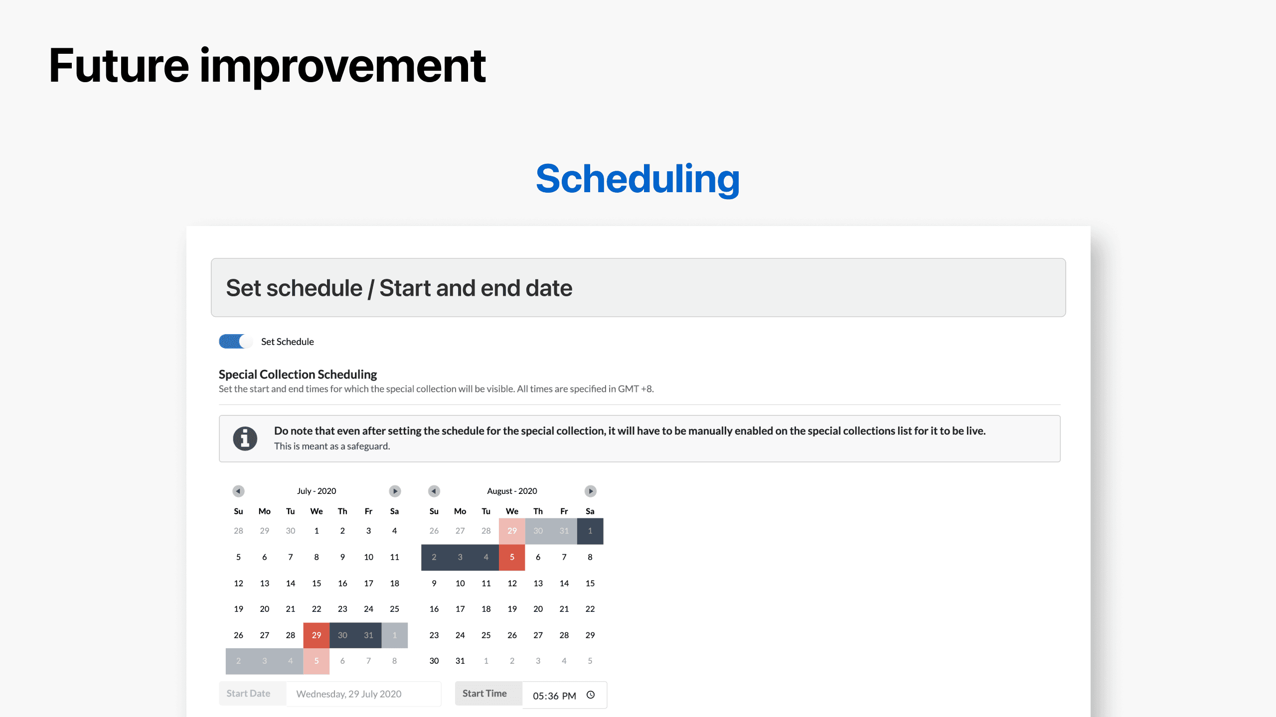 In addition to the column titles, we learned that the team wanted a search function, filter by types and date of creation, since Special Collections usually run for a specific time period. This allows them to easily find which collections are active during a certain timeframe.