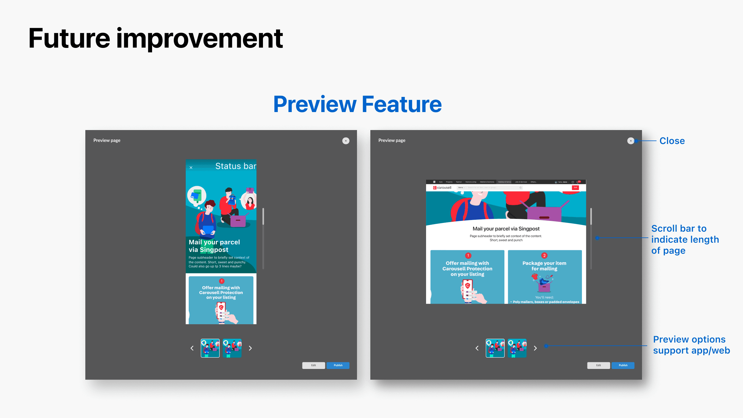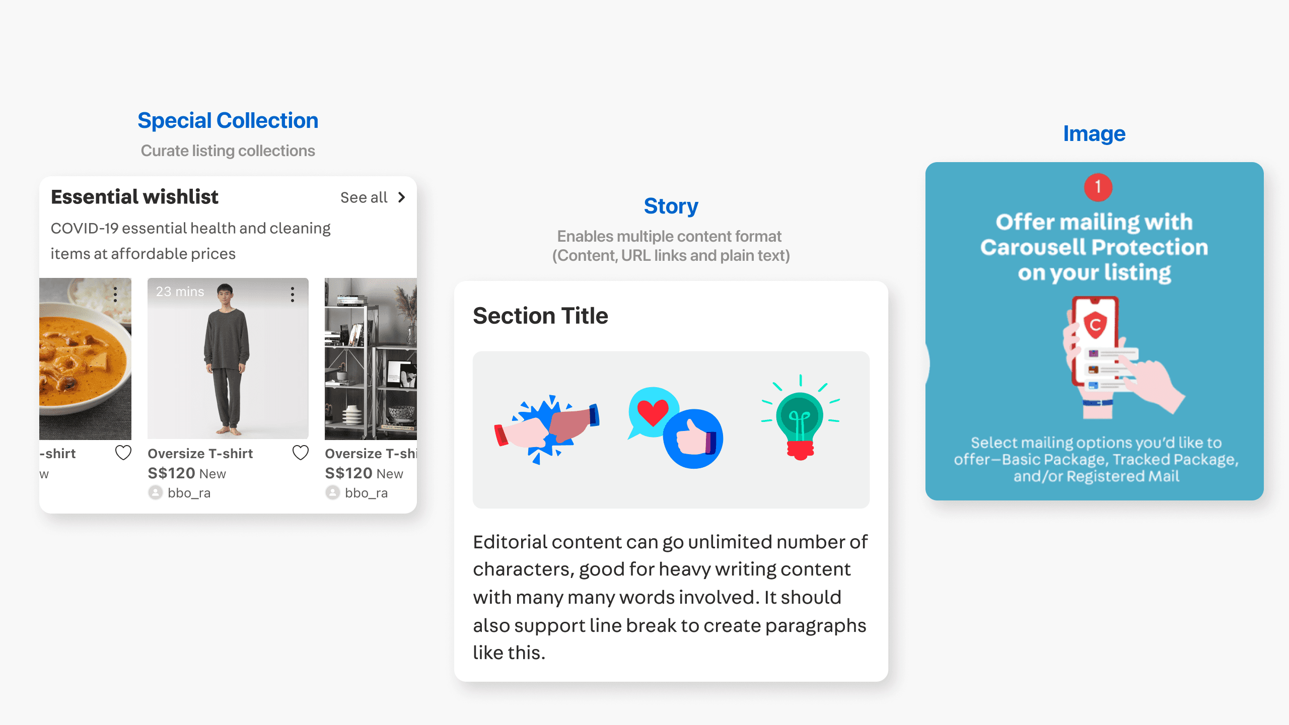 At Carousell, I also designed tools that helped the marketing team run campaigns and improve engagement without needing much engineering support. The three features were built to work together as a connected system, each complementing the others.