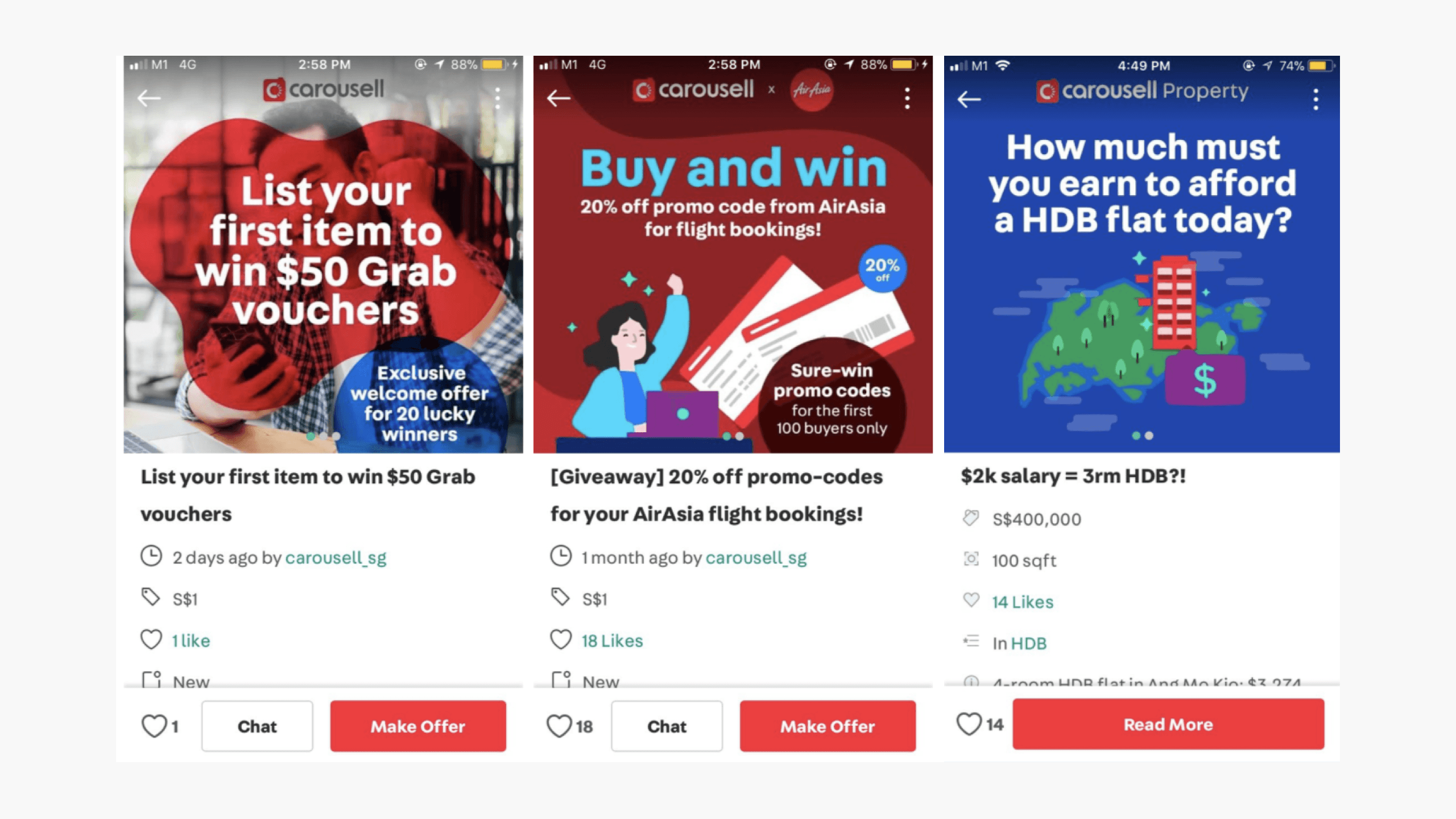 Campaigns on Carousell were often “hacked” onto listing detail pages (as shown in the image), which made them inflexible and easy for users to miss.